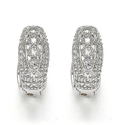 RMZ GOLD NYC 14k White gold filled Huggie Hoop, with Cubic Zirconia, Rhodium