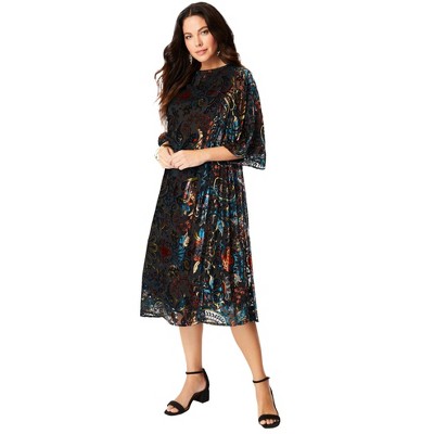 Roaman's Plus Size 3/4 Sleeve Mesh Inset Boatneck Dress