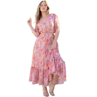 Roaman's Plus Size Short Sleeve Wrap Fit And Flare Dress
