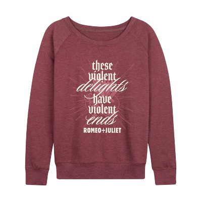 Women's - Romeo + Juliet - Violent Delights Lightweight French Terry Wide Neck Long Sleeve Graphic Shirt