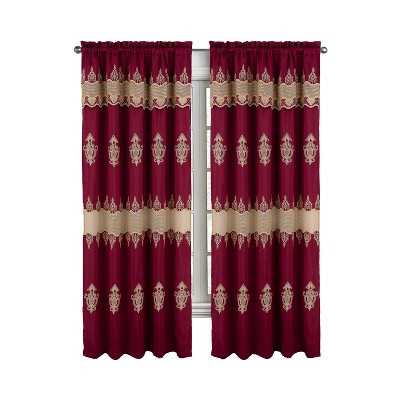 RT Designers Collection Debbie Macrame Construction 3" Rod Pocket Curtain Panel Burg/Gold