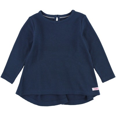 RuffleButts Baby Girl Waffle Knit Long Sleeve Bow Back Top