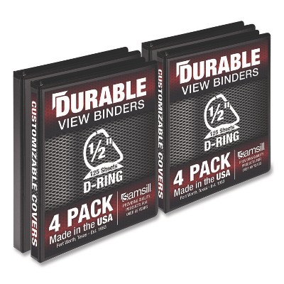 Samsill Durable D-Ring View Binders, 3 Rings, 0.5" Capacity, 11.5" x 8.5", Black, 4/Pack