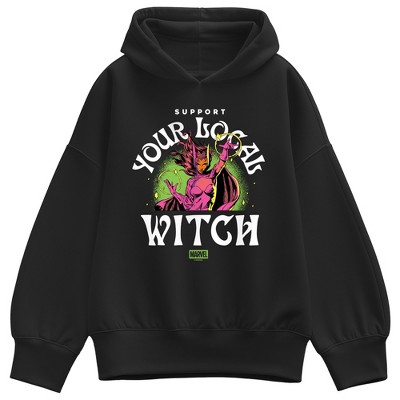 Women's Scarlet Witch Support Local Witch Oversized Fleece Hoodie Sweatshirt - Black - Medium