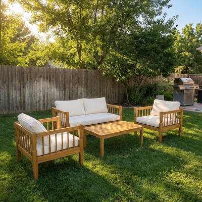 Scott Living Darla 4 Piece Outdoor Sleek Acacia Wood Seating Set with Water-Resistant Cushion