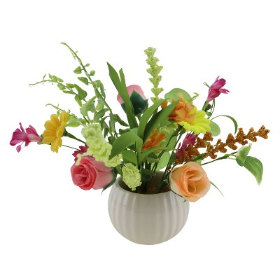 Season's Designs, Artificial Flower Arrangement in Decorative Pot, 8" Rose Flower Bowl, Modern, Tabletop, Living Room, Plastic, Multicolor, Home