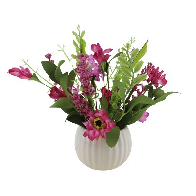 Season's Designs Artificial Flower Arrangement in Decorative Pot, 8" Pink Summer Flower