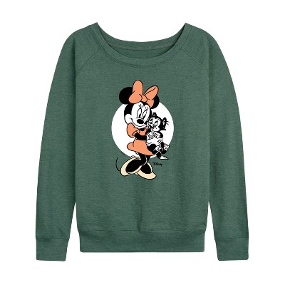 Women's - Disney Classics - Minnie And Figaro Lightweight French Terry Wide Neck Long Sleeve Graphic Shirt