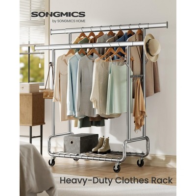 Heavy-Duty Rolling Garment Rack with Extendable Double Hanging Rods, 594 lb Capacity, Adjustable 3-Height with Shelf, Mobile Storage Organizer