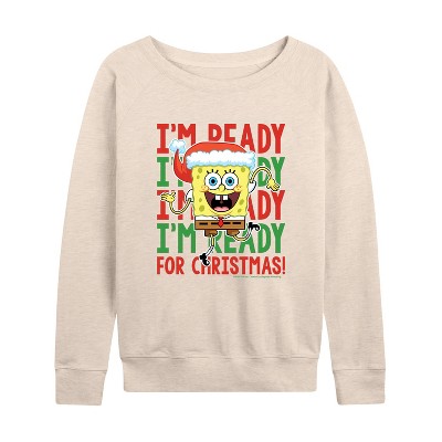 Women's - SpongeBob SquarePants - I'm Ready For Christmas Lightweight French Terry Wide Neck Long Sleeve Graphic Shirt