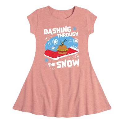 Girls' - SpongeBob SquarePants - Dashing Through The Snow Fit & Flair Cap Sleeve Graphic Dress