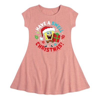 Girls' - SpongeBob SquarePants - Have A Swell Christmas Fit & Flair Cap Sleeve Graphic Dress