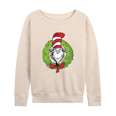 Women's - The Cat in the Hat - Cat Wreath Lightweight French Terry Wide Neck Long Sleeve Graphic Shirt