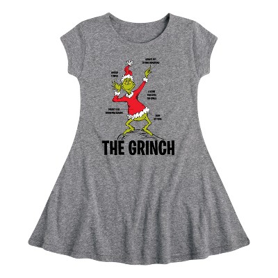 Girls' - The Grinch - Fit & Flair Cap Sleeve Graphic Dress