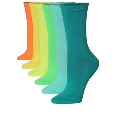 Tipi Toe Women's 6 Pairs Colorful Chromatic Gradient Ombre Funky Space Dye Patterned Crew Dress Socks