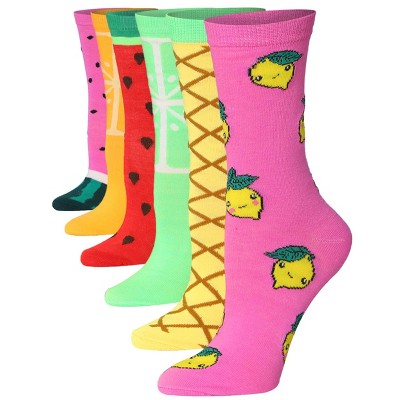 Tipi Toe Women's 6 Pack Colorful Light Fruity Pastels Patterned Lightweight Crew Socks