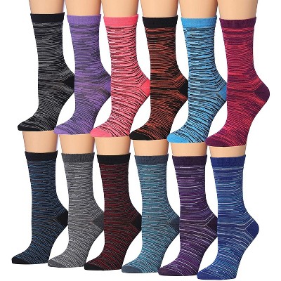Tipi Toe Womens 12 Pairs Cushioned Running Crew Socks for Running, Hiking, and Athletic Activities