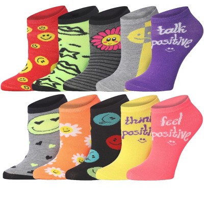 Tipi Toe Womens 10 Pairs Bright Smiles & Blooms Pattern & Mix Colors For Vibrant Style Low Cut/No Show Socks
