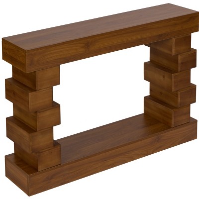 TopComfy End Tables Geometric Block Stacked Wood Console Table Entrance Table with Warm Natural Finish for Living Room, Brown, 49.4"*35.4"*29.6"
