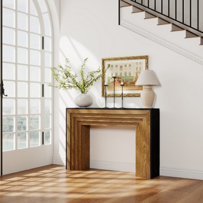 TopComfy End Tables Modern Contrast Console Table Entrance Table with Layered Wood Frame and Black Top for Living Room, Gray, 49.41"*24.69"*23.43"
