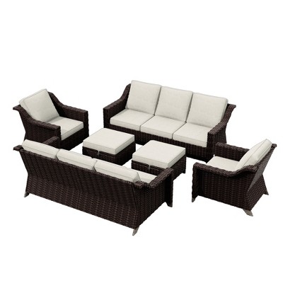 UPTIOT 7-Piece Outdoor Set: 3-Seater Sofa, 2 Swivel Chairs, 2 Ottomans & 2 Single Chairs