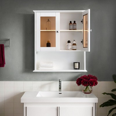 VANIRROR Bathroom Wall Cabinet with Glass Doors, Wall Mounted Medicine Cabinet, Over The Toilet Storage Cabinet for Bathroom Bedroom Living Room