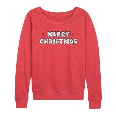 Women's - Winnie the Pooh - Merry Christmas Characters Lightweight French Terry Wide Neck Long Sleeve Graphic Shirt