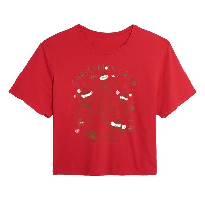 Women's - Winnie the Pooh - Tigger, Pooh, Eeyore, & Piglet Christmas Crew Cropped Graphic T-Shirt