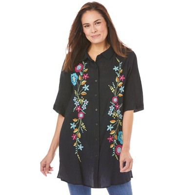 Woman Within Perfect Printed Short-Sleeve V-Neck Tunic