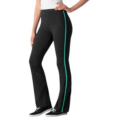 Woman Within Petite Stretch-Cotton Knit Pull-On Bootcut Side-Stripe Leggings