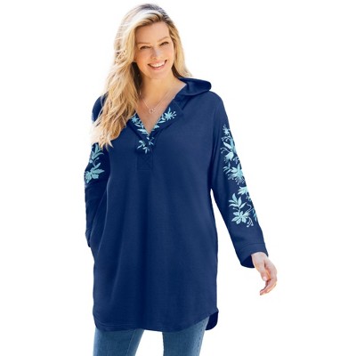 Woman Within Embroidered Hoodie Sweatshirt