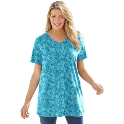 Woman Within Perfect Printed Short-Sleeve V-Neck Tunic