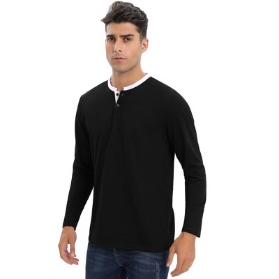 Mens Long Sleeve Henley Shirts Casual Tee Shirts Crew Neck Regular Fit Button Pullover T-Shirts