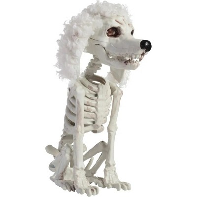 Halloween Poodle Dog Skeleton Decoration, Plastic Animal Bones Prop- Party Decor, Haunted Houses- Sitting Puppy Statue with Furry Ears & Moving Limbs