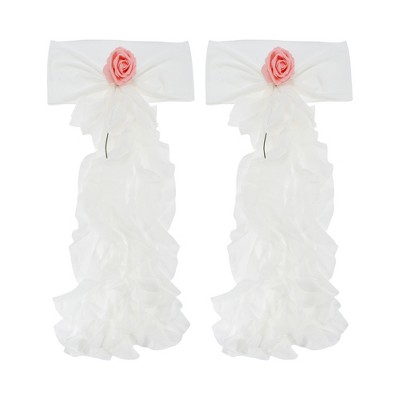 Unique Bargains Halloween Christmas Flower Chair Belt Stretch Chair Sashes 13.78"x5.91" White 2 Pcs