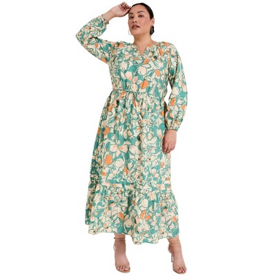 June + Vie by Roaman's Raglan Puff Sleeve Maxi Dress