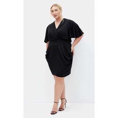 Women's Plus Size Frill Shoulder Dress - black | CITY CHIC