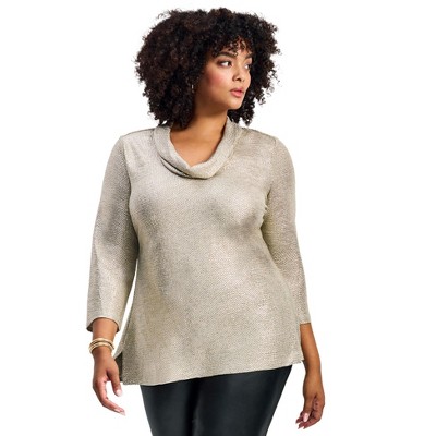 ELOQUII Collared Shirt With Lace-Trimmed Placket