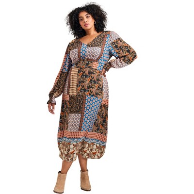 Avenue Vicki Textured Dobby Bell Sleeve Dress