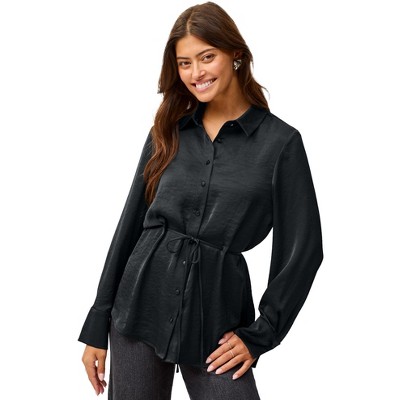 ellos Button Front Satin Tunic With Self Belt