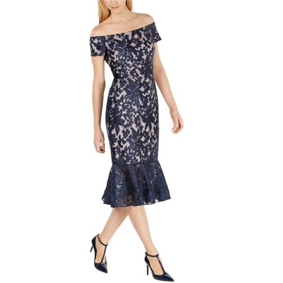 Calvin Klein Womens Lace Off-Shoulder Midi Dress
