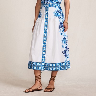 Lands' End Women's Poplin Border Print Midi Skirt - Set Bottom