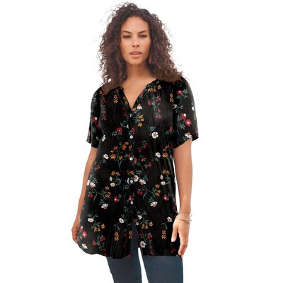 Roaman's Plus Size Angelina Tunic Top – Short Sleeve, Flowy Fit, Everyday Comfort