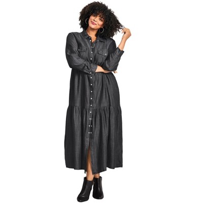 Woman Within Fineline Stretch Denim Wide-Leg Pull-On Jeans