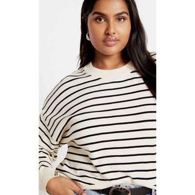 Women's Plus Size Stripe Lilia Sweater - cream | CITY CHIC