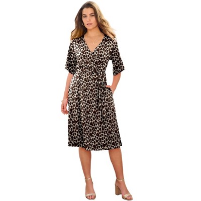 Roaman's Plus Size Short Sleeve Wrap Fit And Flare Dress