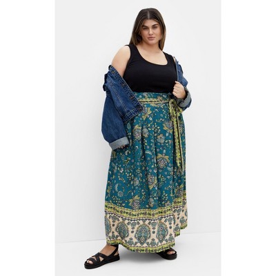 Women's Plus Size Mysteria Border Linen Skirt - french blue | CITY CHIC