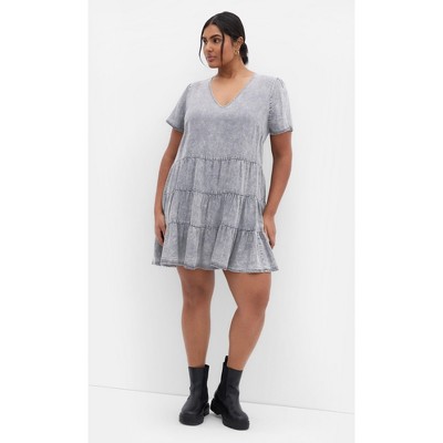 Women's Plus Size Denim Tier Dress - grey wash | CITY CHIC