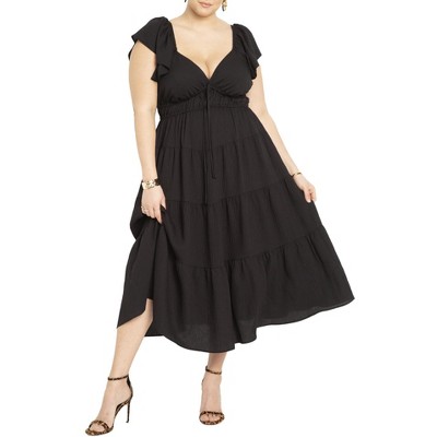 ELOQUII Pleated Ruffle Neckline Midi Dress