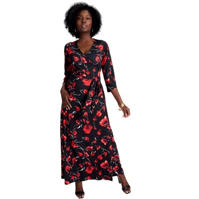 Jessica London Stretch Knit Faux Wrap Maxi Dress